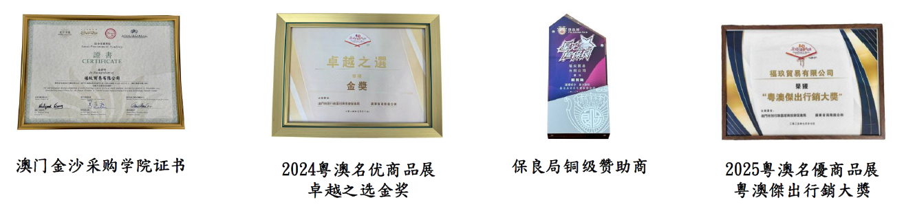 福玖貿易有限公司一直秉承專業、誠信和品質至上的經營理念,致力於為客戶提供優質的產品和服務。 這些榮譽的加持,不僅是對福玖貿易有限公司努力的認可,更是對其在行業中持續發展和創新的肯定。福玖貿易有限公司將繼續努力,為客戶提供更多優質的產品和服務,以回饋廣大消費者的信任和支持。讓我們共同期待福玖貿易有限公司在未來的發展中,繼續創造更多的輝煌成就!