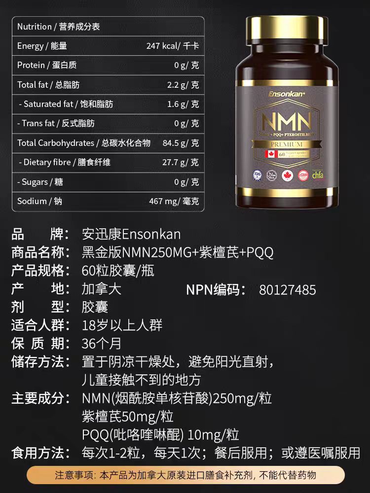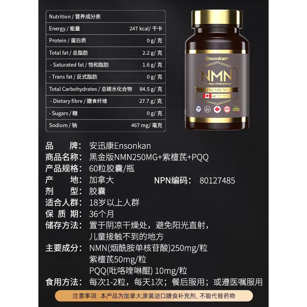 Ensonkan 安迅康 NMN15000+PQQ+紫檀芪(黑金版)